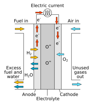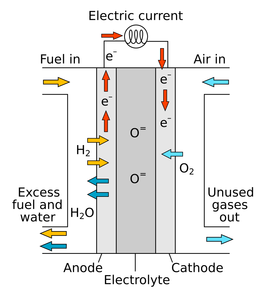| Fig. 1: SOFC Diagram. [1] (Source; Wikimedia Commons) |