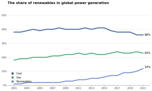 | Fig. 1: Global Shares of Coal, Gas and Renewables. [1] (Image source: E. Daly) |