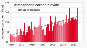 | Fig. 1: Annual Increases in Carbon Dioxide. [1] (Source: Wikimedia Commons) |