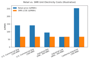 | Fig. 2: Retail vs. SMR unit electricity costs across representative cases. [7,8].) (Image source: L. Skarada.) |