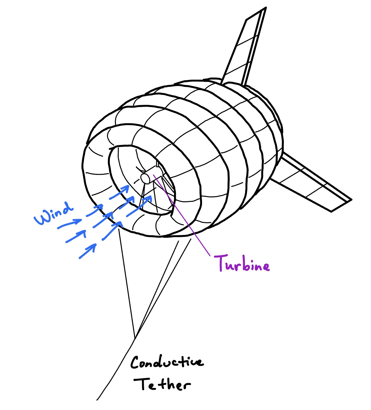 | Fig. 1: Schematic of a buoyant air turbine. (Image source: B. Suo.) |