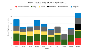 | Fig. 1: French electricity imports to various countries from 2015 to 2024. (Image Source: A. Woodrow, after Maguire. [3]) |