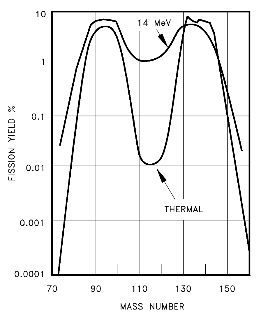 | Fig. 1: Distribution of fission products as a function of mass number. [1] (Courtesy of the DOE) |