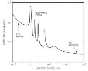 | Fig. 2: Typical plot of incident neutron energy versus neutron absorption cross section. [1] (Courtesy of the DOE) |
