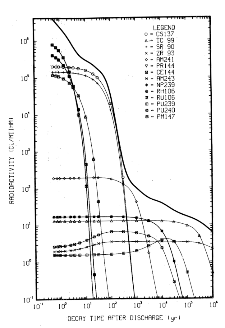 [2] A. G. Croff et al., "Graphical and Tabular Summaries of Decay Characteristics for Once-Through PWR, LMFBR and FFTF Fuel Cycle Materials," Oak Ridge National Laboratory, ORNL/TM-8061, January 1982.