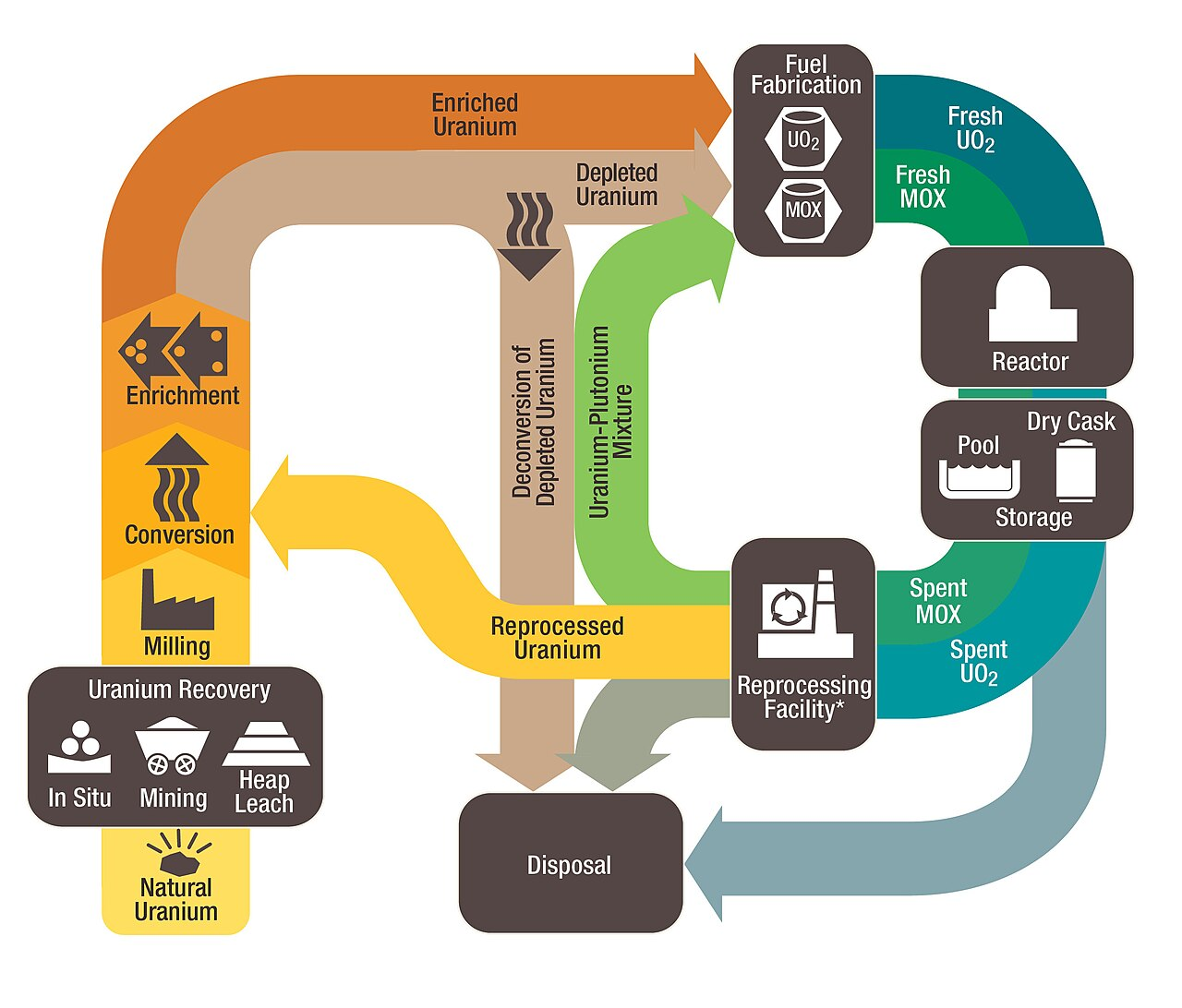 | Fig. 2: Nuclear Fuel Cycle (Courtesy of the NRC. Source: Wikipedia Commons) |