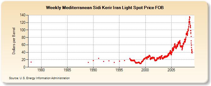 | Weekly Mediterranean Sidi Kerir Iran Light Spot Price FOB |